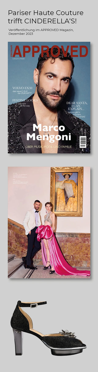 Ein zauberhafter Brautschuh als Closetoes Riemchenpump von der Firma Cinderella’s by Marcela iin silber-schimmerndem Rindsleder mit elegantem Nuss-Logo (als Inspiration aus dem Märchen drei Nüsse für Aschenbrödel) sowie hochwertigem transparenten Absatz und Plateau. Die Schuhe sind mit silbernen Accessoires verziert, und die Schnalle ist mit funkelnden Steinchen veredelt. Perfekt geeignet für Hochzeiten sowie alle gehobene Events.