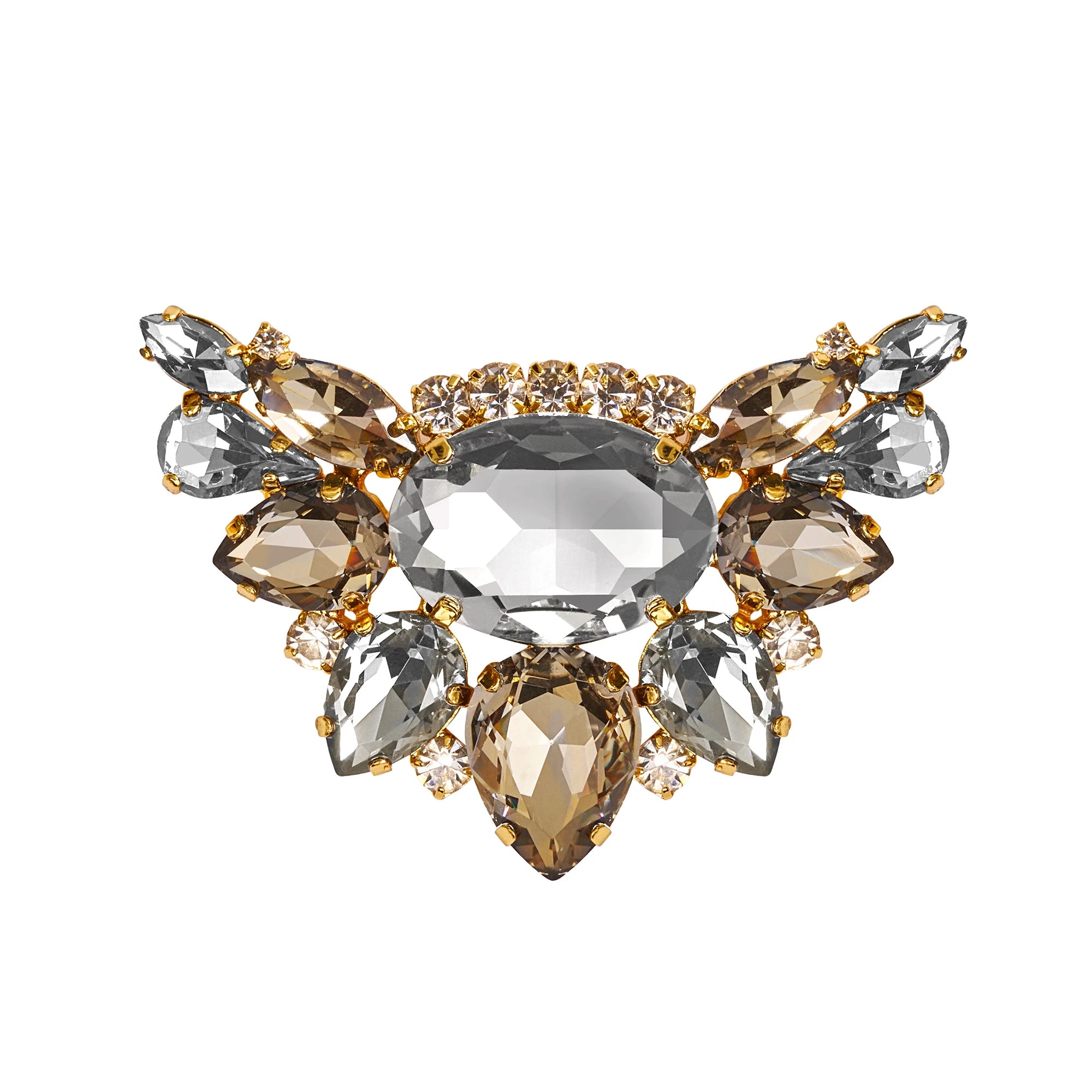 Tauchen Sie ein in die Welt des Glamours mit unseren bezaubernden Broschen für CINDERELLA'S by Marcela Schuhe! Diese exquisiten Accessoires zeichnen sich durch einen eleganten goldenen Untergrund aus, der mit funkelnden weissen Steinchen verziert ist. Die Broschen sind ein wahres Schmuckstück, das Ihren Schuhen einen Hauch von Eleganz und Raffinesse verleiht.