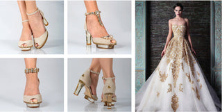 GOLDENE PRINZESSIN: Peeptoes Riemchenpumps / Brautschuhe inkl. Schuh-Schmuck